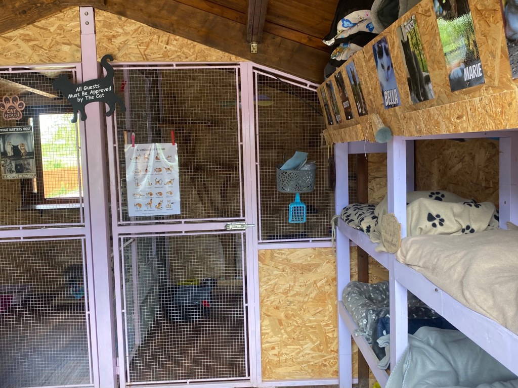 Nella casetta vi sono due stanze chiuse per i gatti ospiti temporanei